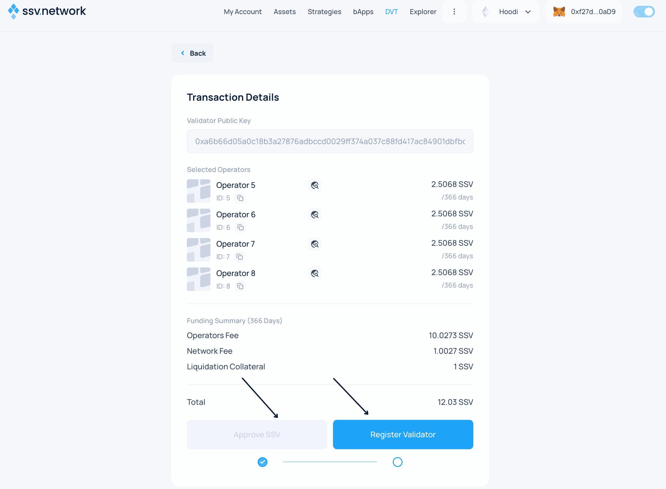 - Click Approve SSV and confirm in your wallet