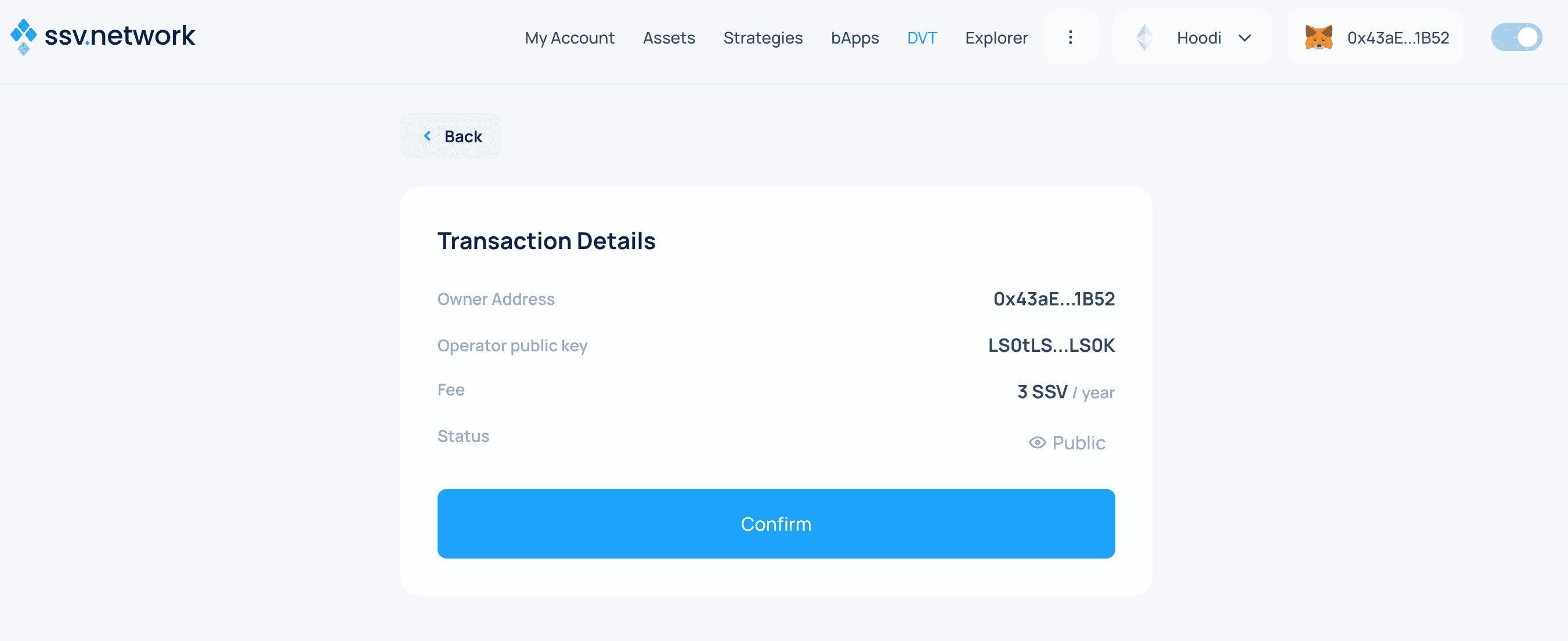 - Congratulations! 🎉 Your validator is now registered on the SSV network and being managed by your selected operators.